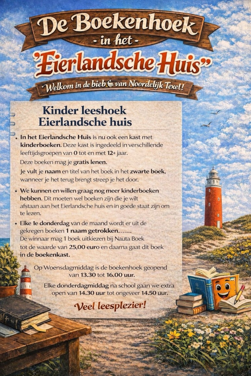 In het Eierlansche huis is namelijk nu ook een kinderleeshoek. Op de bijgevoegde flyer vindt u alle informatie. De flyer hangt ook bij de ingang van school.