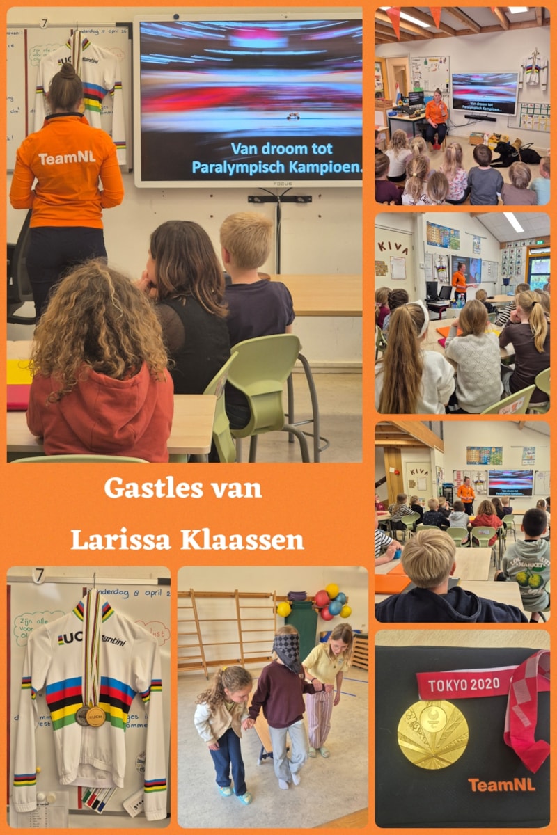 Bijzonder bezoek vandaag! In het kader van ons schoolbrede thema ’Sport’ kwam Larissa Klaassen een gastles geven aan alle groepen over haar sportcarrière. En wat is die indrukwekkend! Met wielrennen heeft ze al een gouden medaille gehaald op de Paralympsiche Spelen en haar nieuwe doel is om TeamNL te mogen vertegenwoordigen als judoka op de Spelen van 2028 in LA. Het was een inspirerende gastles en ze eindigde met een mooie quote over in jezelf geloven. Met een blinddoek voor heeft ze ons ook nog laten voelen hoe het is als je heel weinig kan zien. Bij ons alleen maar groots respect voor deze sportvrouw!